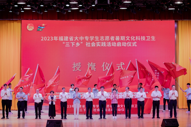 文明风7月17日讯 7月14日,由省委宣传部、省委文明办、省委网信办、省委教育工委、省民宗厅、省文旅厅、省河长办、团省委、省学联联合开展的2023年福建省大中专学生志愿者暑期文化科技卫生“三下乡”社会实践活动在武夷学院启动。武夷学院党委书记庄祥生致欢迎辞,团省委书记李腾出席活动并讲话。南平市副市长龚志阳和活动主办单位领导出席活动并为实践团队代表授旗,省直属高校团委、在南高校团委和学生代表参加启动仪式。
