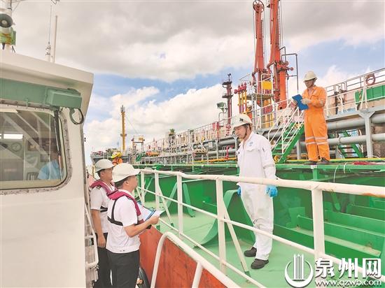 26日,泉州海事局工作人员深入一线指导防御台风工作。 (许雅玲 陈珠霞 摄)