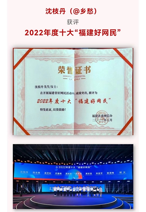 沈枝丹(@乡愁)被评为2022年十大“福建好网民” 南平市委网信办供图