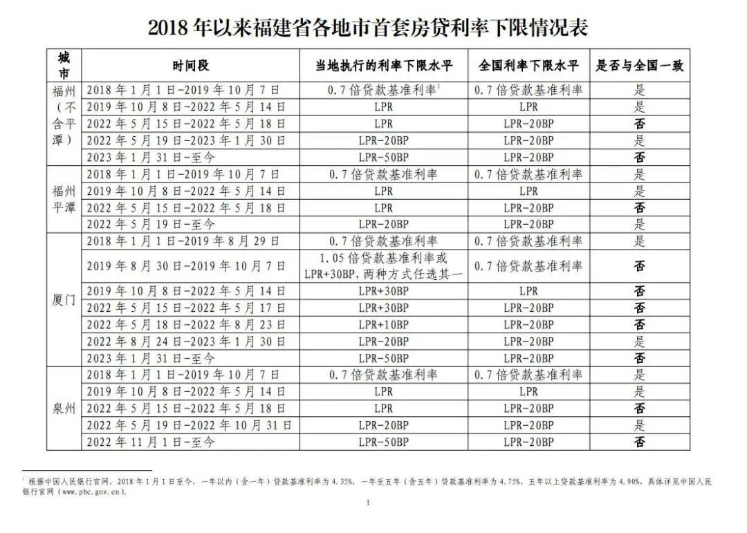 福州(不含平潭)执行的利率下限水平为LPR-50BP。