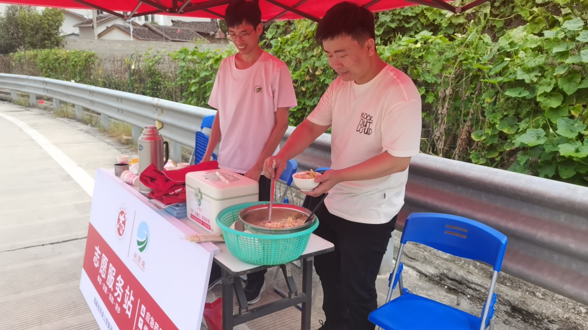 近日,在宁德北中心所八都收费站,因车辆事故而滞留的司乘人员正在焦急地等待着事故处理结果,但饭点已至,让大家更是疲惫不堪,收费站值班班长陈月爱和收费站的志愿者们发现后,便为事故滞留司乘人员送上热气腾腾的茶水和汤面、面包月饼,并关心疏导着司乘人员们焦虑的情绪,及时解决滞留司乘的实际困难。在现场,宁德北中心所志愿者们用自己的实际行动、暖心的服务,及时为滞留司乘人员提供周到细致的志愿服务,用行动展示了高速人的责任与担当,擦亮了志愿红的温暖底色。
