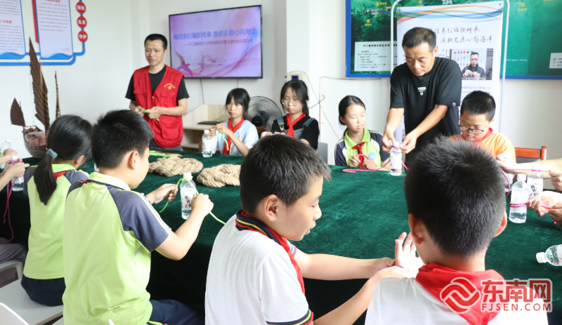 沙江中心小学开展“绳结系打编织传承 渔耕志愿心向海洋”非遗传承志愿活动。陈玲汇 摄