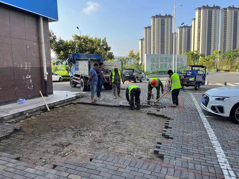 施工队伍正在清理松动的地砖 黄慧聪 摄