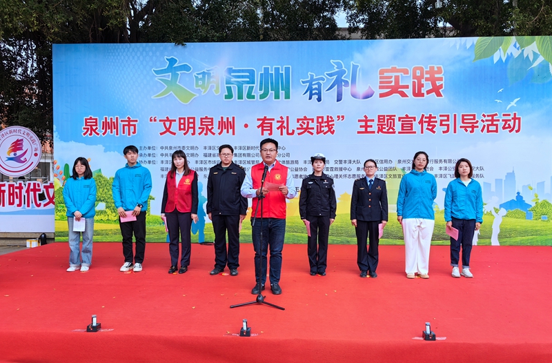 为贯彻落实全国、全省宣传思想文化工作会议精神和“深学争优、敢为争先、实干争效”行动部署,进一步深化拓展全国文明城市创建,11月30日上午,由泉州市委文明办、丰泽区文明委主办,丰泽区委文明办、福建省高速公路集团泉州管理分公司承办的“文明泉州 有礼实践”主题宣传引导活动在泉州举办,活动设主会场和分会场。