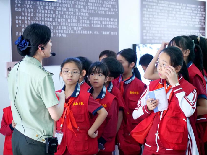 在服务区一楼的铁观音文化馆里,小记者们围着讲解员,认真地把知识点记录下来,时不时提出自己的疑问及见解。