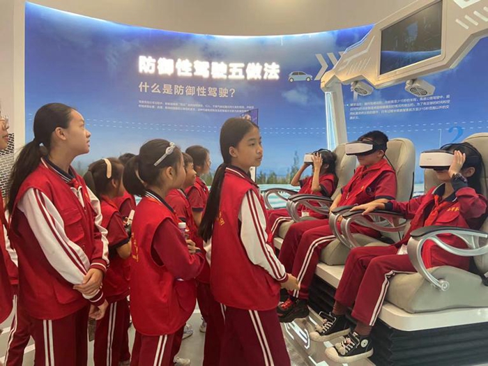 体验隧道穿越逃生、抢答安全知识、体验VR……在二楼的槐植民宿藤铁工艺展示厅、交通安全智慧宣教馆内,小记者们沉浸式学习高速公路行车的安全知识。