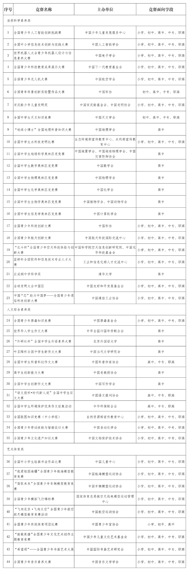 2022—2025学年面向中小学生的全国性