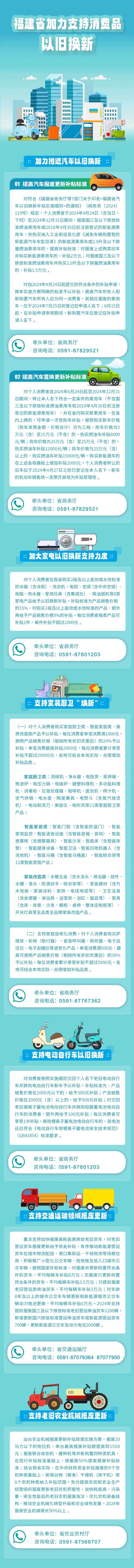 近日,福建省发展和改革委员会、福建省财政厅印发《福建省加力支持消费品以旧换新实施方案》,涉及汽车、家电、家装厨卫电动车等方面,实施方案有效期至2024年12月31日,该政策措施不包含厦门市。在实施过程中,如遇国家、省有关政策调整,以新出台政策为准。