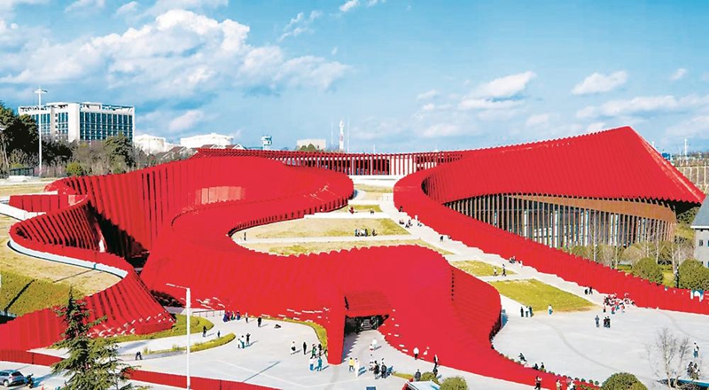 从高处俯瞰贵阳双龙航空经济区,一条巨型“红飘带”正在大地上飞扬。作为长征国家文化公园(贵州段)标志性、引领性工程,“红飘带”长征文化数字艺术馆集文化教育、艺术表达、科技体验于一体,借助科技手段和数字技术推动实现长征精神的活态传承和现代转化。