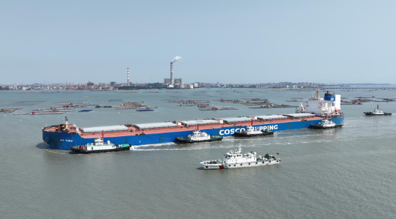 4月2日,30万吨级超大型船舶"合瀛"轮顺利靠泊湄洲湾,标志着首条“丝路海运”铁矿石航线累计运量突破1000万吨大关。图源:新福建