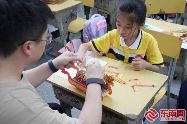 东南网莆田5月30日讯(通讯员 陈官熙 邱晓婧 吴伟锋 文/图 )端午节遇上六一节,传统节日叠加儿童节,孩子们最快乐。连日来,湄洲湾职业技术学院信息工程系、建筑工程系师生志愿者携手走进枫林小学和汀渚小学,一起过节体验传统文化,感受童趣。