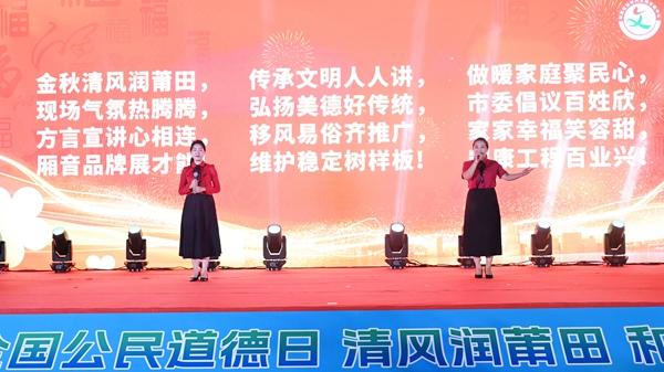 当晚义演节目精彩纷呈。朗诵《道德之光,检徽闪耀》、莆仙赞句《厢音齐赞家风暖》、小品《吓豹说聘金》等节目轮番上演,各有特色又接地气,传递家风文明,倡导移风易俗。现场还设置了食品安全、交通安全、防诈骗反传销、移风易俗、科普知识等文明实践文明宣传摊位,民间志愿服务组织踊跃参与,现场提供服务,吸引大量市民前来参与。