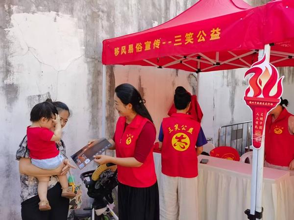 活动还积极响应“文明中国·人人有礼”号召,增设“移风易俗宣传”与“文明出行宣传”摊位。志愿者围绕中秋绿色出行、文明旅游等内容展开宣讲,结合真实案例提醒居民注意节日安全;同时通过发放宣传册、现场倡议等形式,倡导简约过节、反对铺张浪费,引导居民抵制婚丧嫁娶大操大办、人情攀比等陋习。居民们驻足聆听,在温馨互动中强化了文明过节意识。