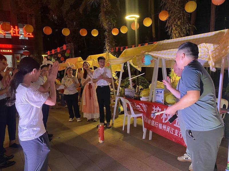 福建海峡银行闽江支行带来诗朗诵《团圆》,深情诠释“千里共婵娟”的中秋情。来自台湾桃园的黄钰婷,是福建海峡银行福州闽江支行的员工,也是漳州人的媳妇。今年是她首次参与福州社区组织的中秋活动,与社区居民一同烤肉、互动的经历,让她直言“体验感蛮好”:“热闹的氛围让我感受到跟家人在一起的感觉。”她分享道,此前在台湾过中秋,多是与家人团聚,以烤肉、唱歌等偏现代化的方式度过;而福州社区的中秋活动,因丰富的民俗环节与互动游戏,让她感受到更浓厚的传统民俗氛围。“台湾的家人此前也来大陆看望我,看到我工作、生活顺利,家人们也十分放心。”