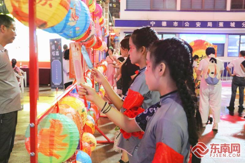 市民三五成群猜灯谜。东南网记者 江琳琳 摄