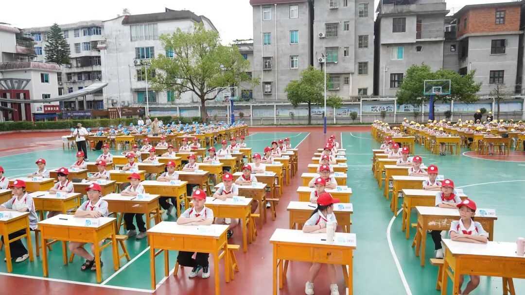 近日,蕉城第六小学举行“方寸邮票忆烽火 童心执笔颂和平”——纪念中国人民抗日战争暨世界反法西斯战争胜利80周年“三香文化”百人现场书画活动。活动由书香启智·悦见未来、墨香育德·书承文脉、邮香润心·共绘成长三个环节组成,全校百余名学生通过书写硬笔字、绘画创作和知识答题等形式,在方寸邮票间重温红色历史,传递和平理念。