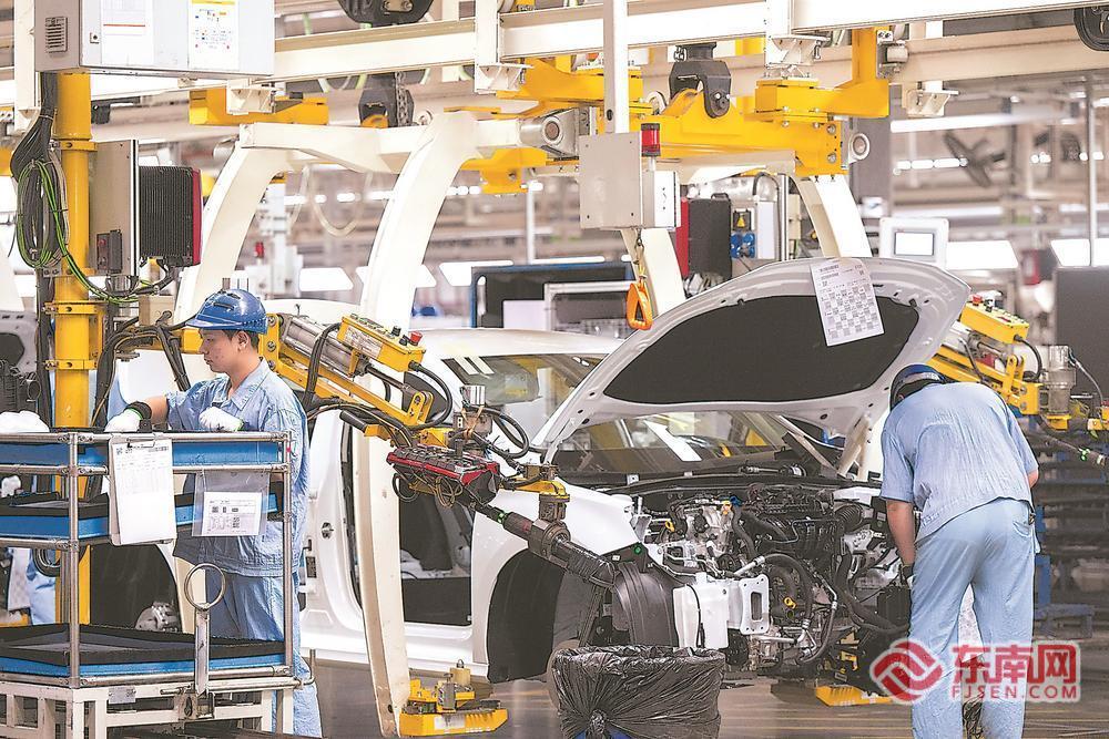 上汽宁德基地,工人在生产线上组装汽车。 福建日报记者 王毅 摄