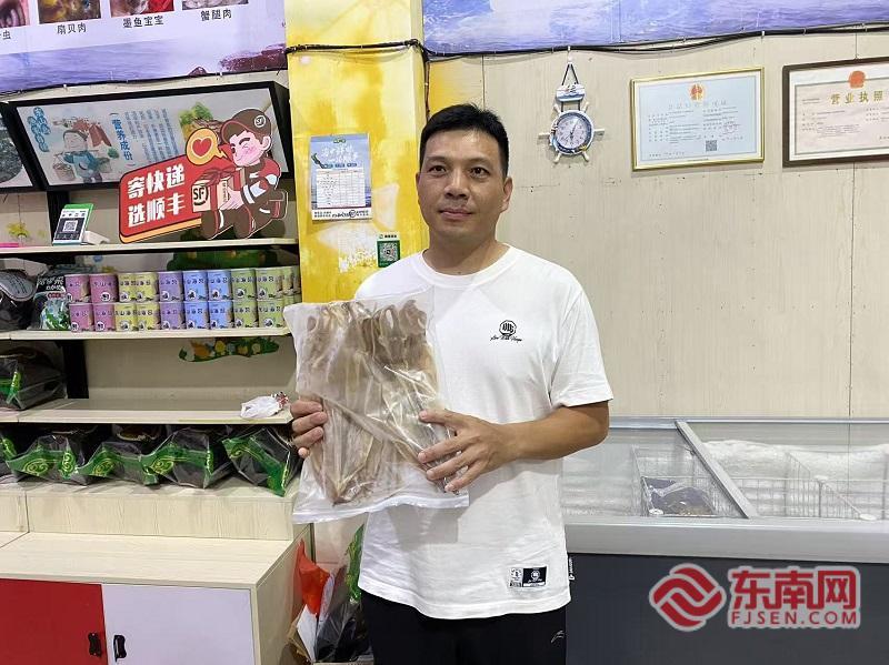 邹松明展示店里的海鲜干货。东南网记者 卢金福 摄