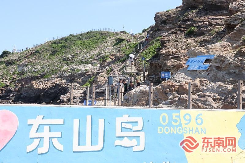 站在大肉山景区远眺,湛蓝的海水与奇峻的海蚀地貌相映成趣,引得游客刘先生一家不停拍照:“太漂亮了!海蓝、山奇,还有这么有特色的灯塔。”