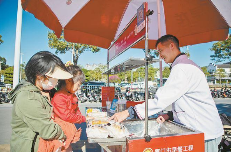 1993年出生的余伟钦,在坂尚地铁站4号出入口经营早龙早餐车。在他的早餐车旁,一块红色小牌子格外醒目,上面写着:“如果您在厦门没有收入或者遇到困难,来份‘元气满满早餐’,直接拿走就好……”余伟钦说,客人只要说出“来份‘元气满满早餐’”,就可以免费带走一份早餐。