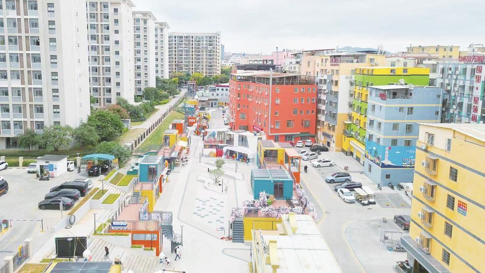 45个创意集装箱,组成开放式青年潮创社交空间,新式潮饮、餐酒吧、轻食烘焙等业态的引入,满足居民消费需求,让围里迅速变成潮味十足的夜消费聚集地,以及活力十足的创业场所。