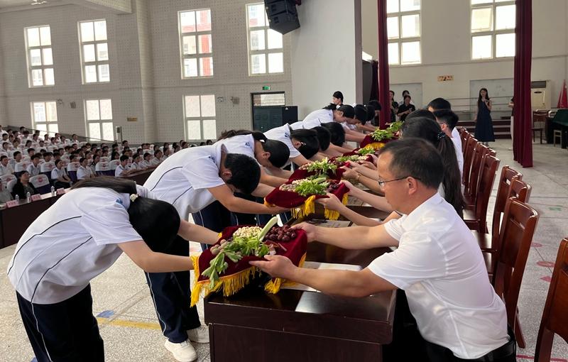“朱子敬师礼”活动,学生向老师呈送献上“释菜六礼”。 魏诗婷 摄