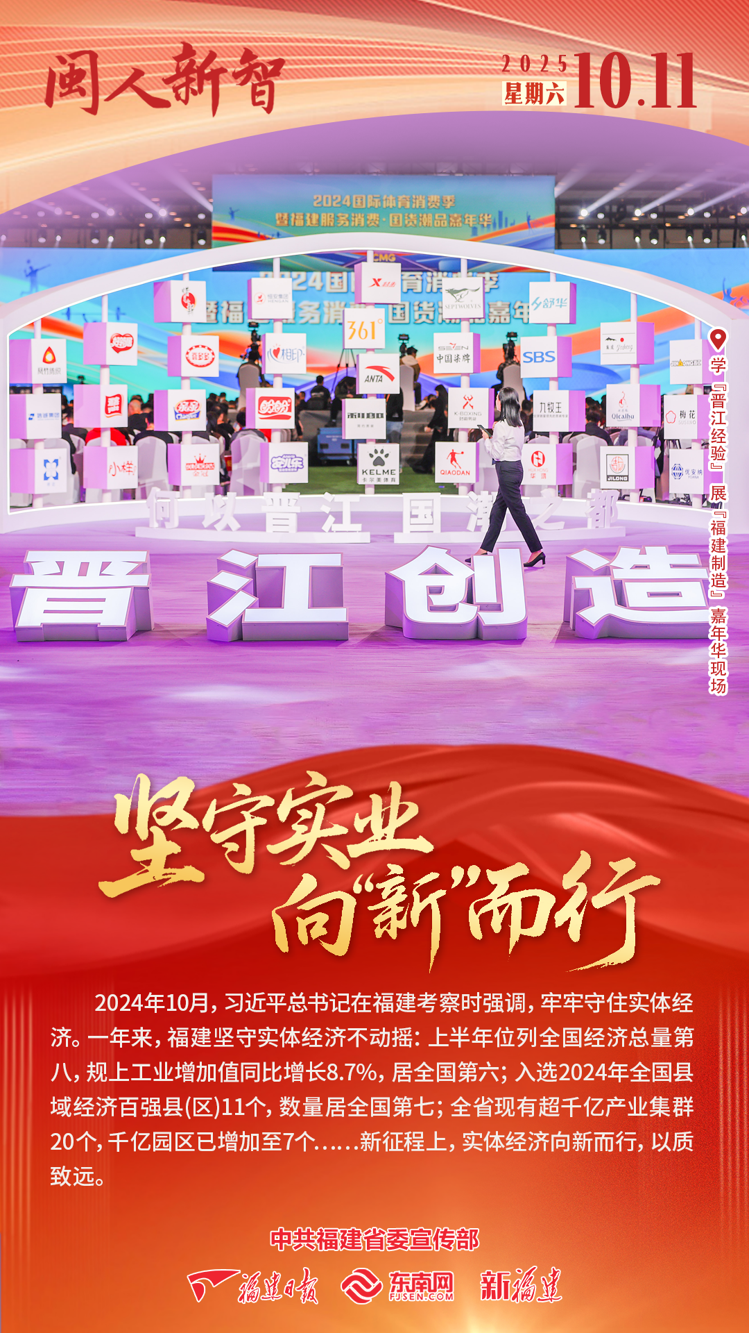 10月9日起,“闽人智慧”编辑部、福建日报社全媒体传播中心特别策划推出“奋勇争先”系列主题海报,围绕科技创新、实体经济、深化改革、高水平开放、生态文明、山海协作、城乡统筹、两岸融合、以文化人、民生保障等主题,生动展现新福建建设的奋进图景。