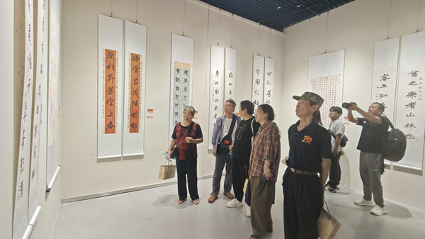 长者们一同参观“银杏百福”书画展。鼓西街道 供图