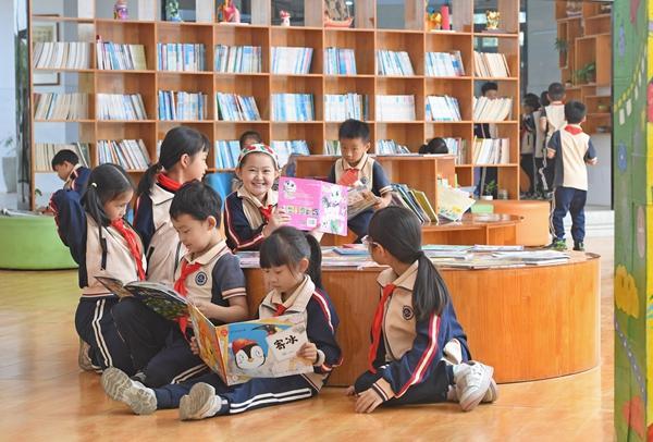 2025年10月21日,在福建师范大学泉港实验小学图书馆阅读区,同学们沉浸在阅读的快乐中。泉港区委宣传部 供图
