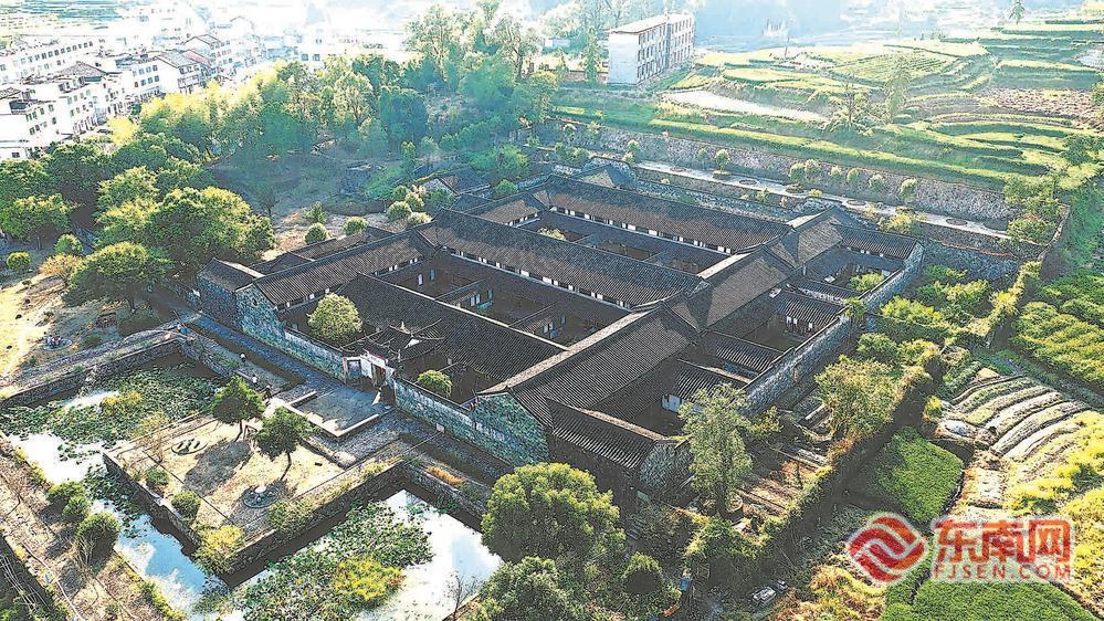 秋阳斜照。省级重点文物保护单位、位于福鼎市白琳镇层层山峦中的翠郊古民居,染上了一层金边。