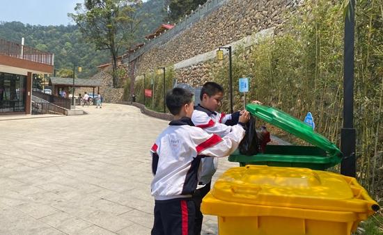 小学生志愿队参与垃圾清理行动。石牛山景区 供图