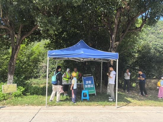 游客在休憩站补充能量。水口镇 供图