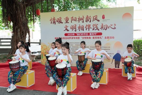 孩子们用歌声与舞步为长者送上节日祝福,童心敬老,暖意融融。