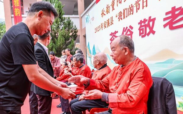 主题活动分为重阳话老、文艺献老、茶俗敬老、茶礼赠老、爱心助老和茶艺传承等多个环节,既融入了安溪传统茶俗茶礼,又突出体现了“爱老为美、助老为乐、尊老为德、敬老为善”的传统美德,现场邀请了100多位老年人参与,营造庆祝重阳佳节的浓厚氛围。