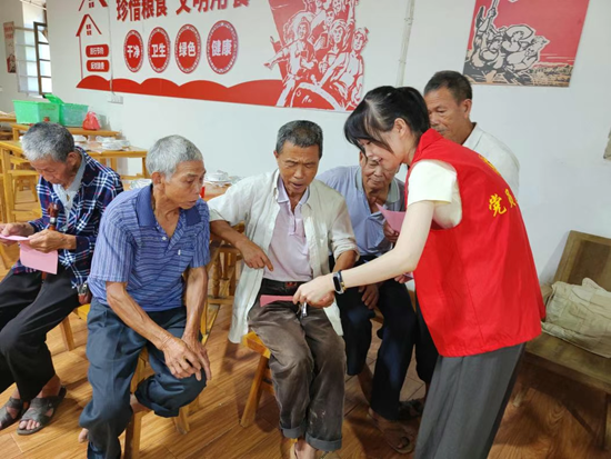 志愿者在爱心食堂宣传村规民约。泉州文明网 供图
