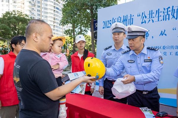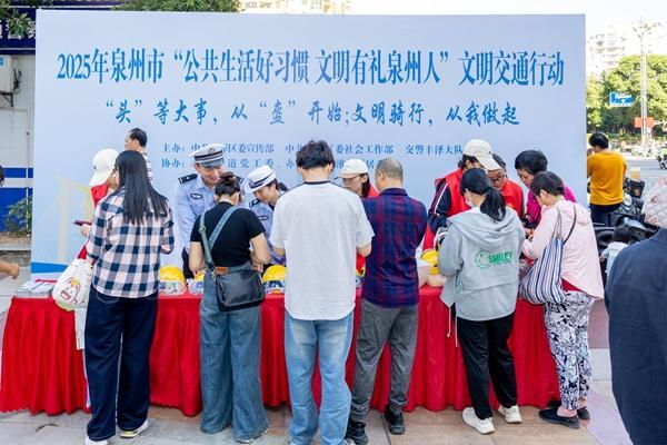 文明风11月10日讯 《福建省非机动车管理办法》自2025年11月1日起施行。为做好该办法的宣传,进一步规范非机动车管理,维护道路交通秩序,保障公民、法人和其他组织的交通安全和合法权益,11月7日上午,2025年泉州市“公共生活好习惯 文明有礼泉州人”文明交通行动在福新花园城广场举办。活动由丰泽区委宣传部联合区委社工部、交警丰泽大队、丰泽街道、源淮社区等单位主办。