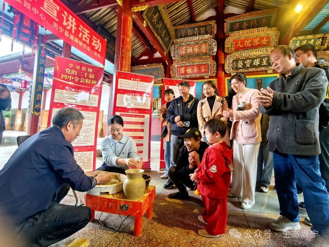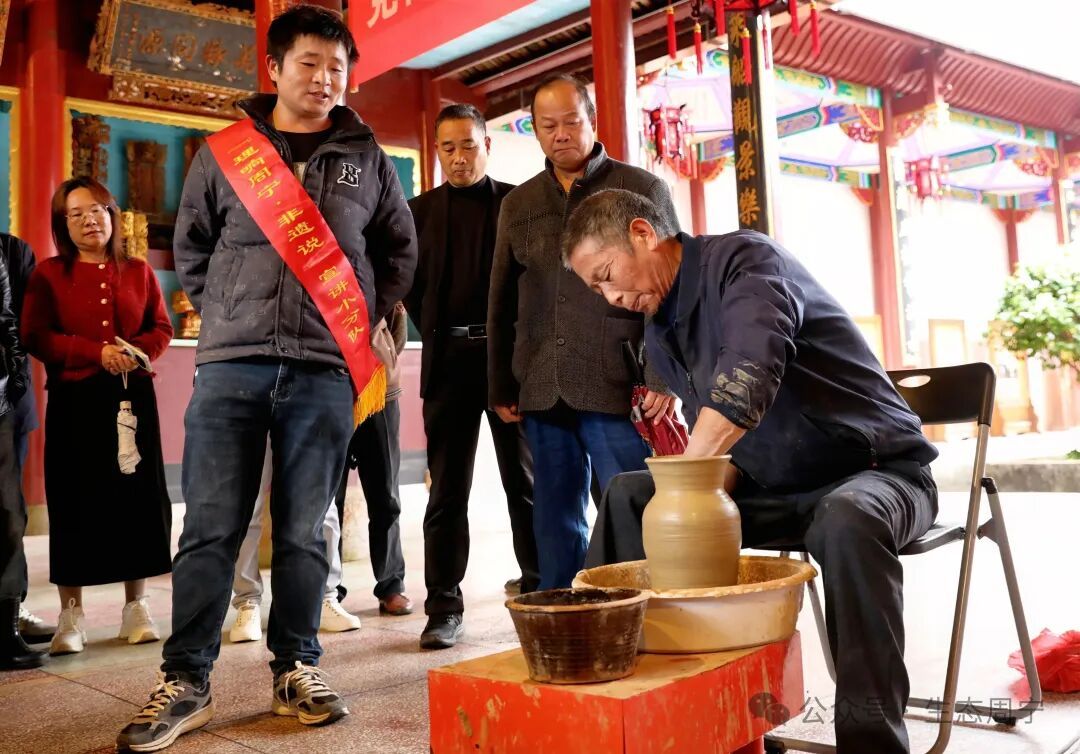 随着拉坯机的转动,肖永灿结合亲身经历,向围观的群众宣讲党的二十届四中全会精神。“全会提出要‘优化提升传统产业’‘激发全民族文化创新创造活力’,这正是我们非遗代表性传承人的底气所在!”他激动地说。