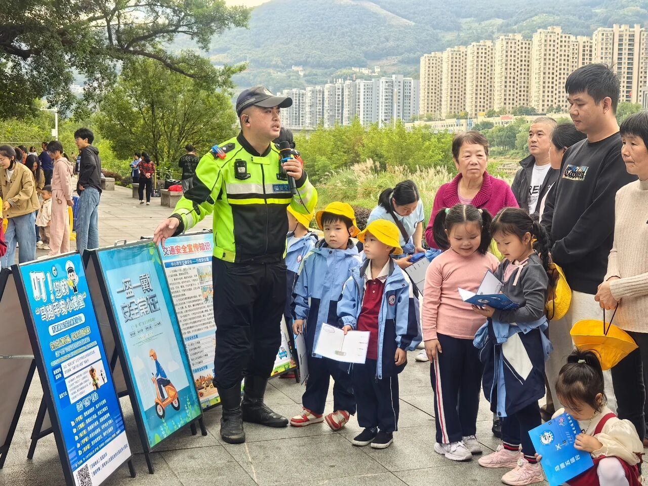 秋风送爽,野趣正浓。近日,风景如画的福安溪口公园内,蓝天幼儿园的秋游现场迎来了一场别开生面的 “文明交通小课堂”。交管大队将文明交通知识融入欢声笑语,为这场秋日之旅注入了满满的文明出行能量。