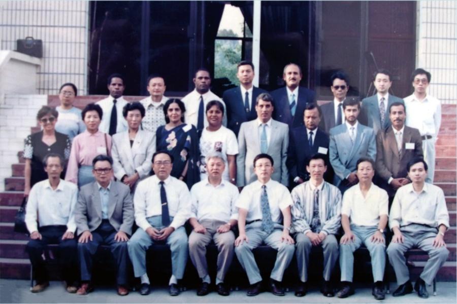 1995年,东高地省学员瓦伊(后排左四)来福建参加菌草技术培训。(受访者供图)