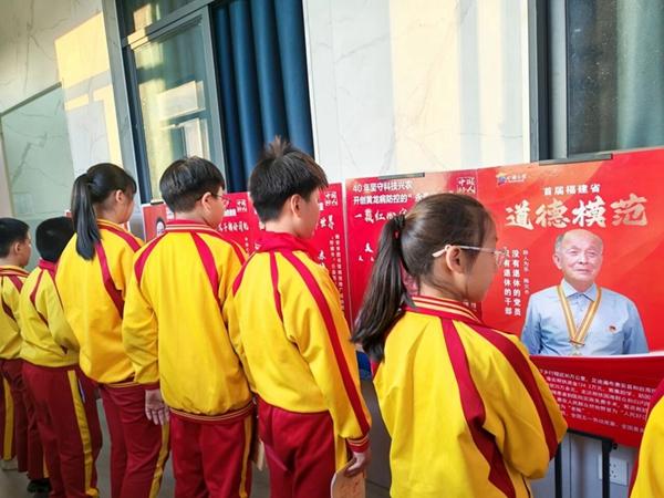 宣传展板前,榜样力量如春风化雨,无声浸润。师生们驻足流连,在事迹中汲取精神养分,在交流中凝聚价值共识。
