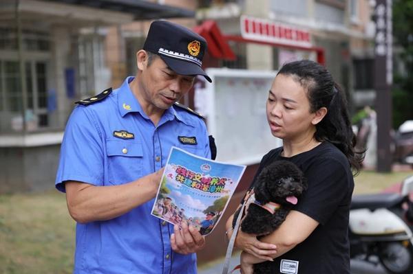 工作人员劝导文明养宠