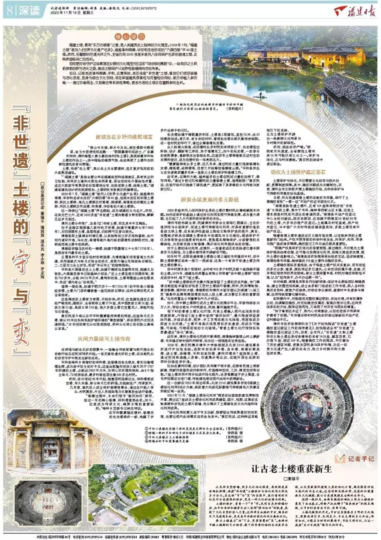 近日,记者走进漳州南靖、平和、云霄等地,走访多座“非世遗”土楼,看到它们或经修缮与活化改造,变身为综合文化空间;或在保留建筑原真性与完整性的同时,被巧妙植入新功能……通过功能再生、文旅融合等系统性策略,更多古老的土楼正在重焕新的生机。