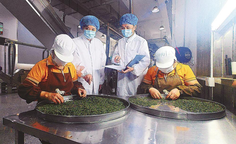泉州海关关员在茶叶生产车间对准备出口的茶叶进行监管。周珊 摄