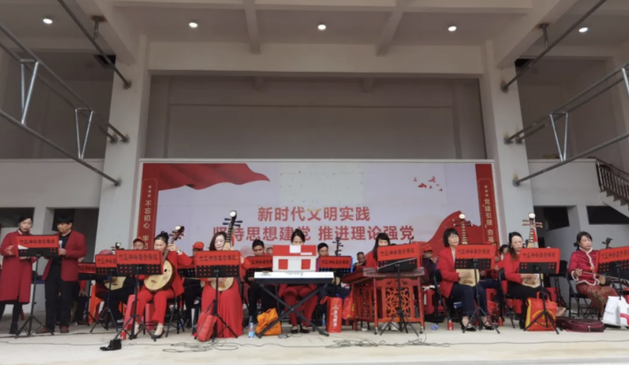 活动在欢快的文艺汇演中拉开帷幕。现场开展了党的二十届四中全会精神专题宣讲,宣讲员用通俗易懂的语言、鲜活生动的例子进行解读,内容既贴合政策导向,又紧扣群众生活实际,让大家深刻理解领会党的新政策、新理论。方言小品《移风易俗》,围绕婚俗改革主题,以通俗易懂的本地语言和贴近生活的故事情节,生动形象地批判了高价彩礼、大操大办等陈规陋习,表演以寓教于乐的方式,引导广大农民群众树立正确的家庭观、婚嫁观,有效推动文明、简约、适度的婚俗观念入脑入心。韵味悠长的“十音八乐”演奏登场,乡村文化志愿者用娴熟的技艺演奏了经典曲目《财丁贵》,展现了非物质文化遗产的独特魅力和莆仙文化的深厚底蕴,传递了浓郁的乡音乡情,让古老的乡村书院雅乐奏响新时代和谐动人乐章。紧接着歌曲独唱《相遇》、歌伴舞、移风易俗快板三句半等轮番上演,现场笑声连连、掌声不断。