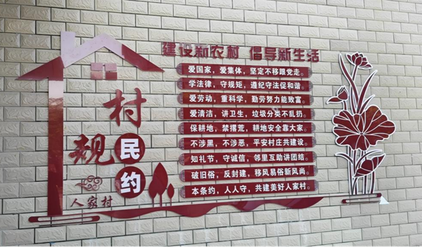 规约植民心,激发治理内生动力。人家村始终将村规民约作为乡村治理的坚实基石,通过村民代表会议收集30余条意见,打磨出朗朗上口的《人家村村规民约》,获评“市级十大优秀村规民约”。人家村打造立体宣传网,宣传栏、文化墙绘随处可见,让规约入脑入心,文艺骨干编成的“三句半”村规人人传唱,“立家规、传家训”活动让文明新风在千家万户生根发芽。依托“一约四会”机制和“移风易俗带头人”“最美家庭”评选,村规民约从“纸上”落到“事上”,形成崇德向善的良好氛围。