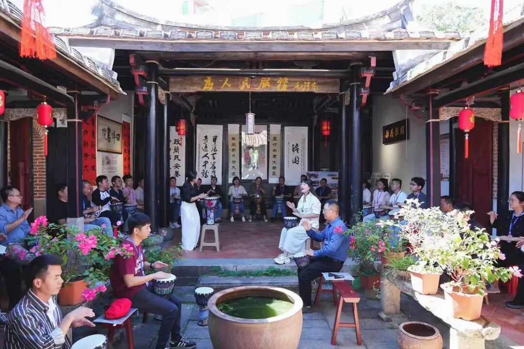 田洋书院里,村民们围坐在一起学习非洲鼓。同安区委文明办 供稿
