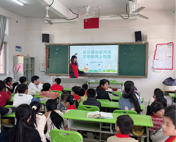 移风易俗,教育需从娃娃抓起。东湖镇别出心裁地将新风尚带进了东塘小学的课堂。志愿者们化身“文明导师”,用生动的PPT、趣味动画和自编自演的情景剧,为孩子们上了一堂深刻的移风易俗课。