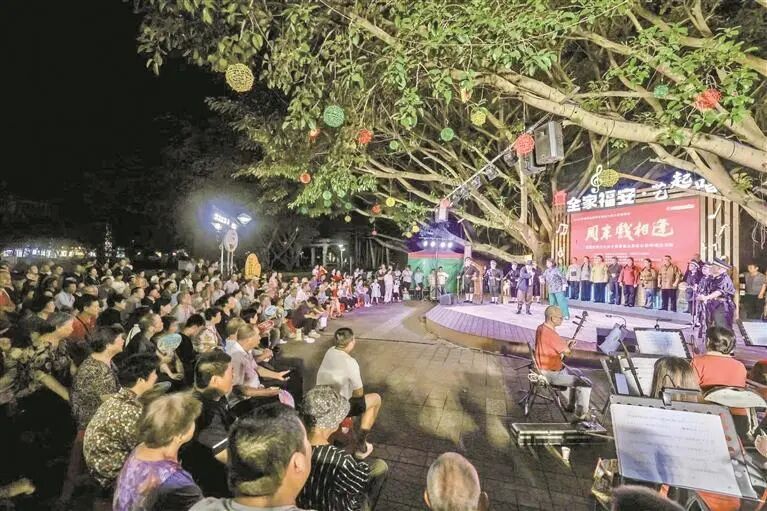 非遗的传承不止于社区课堂,更在专业舞台上焕发新生。“平讲戏用福安方言演唱,听着特别亲切、带劲!”戏迷郑火强带着小板凳早早来到人民广场,这里的“全家福安·艺起唱”演出总是座无虚席。