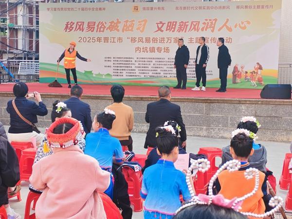 文明风11月27日讯 “左手锣,右手鼓,移风易俗来宣传……”11月26日下午,晋江市内坑镇的活动现场人头攒动、掌声雷动,伴随着孩子们清脆的快板声,“移风易俗进万家”主题宣传活动内坑镇专场正式拉开帷幕。这场以文艺为媒、以文明为核的盛宴,不仅为群众带来了精彩的文艺表演,更通过多样互动和便民服务,让文明新风落地生根。