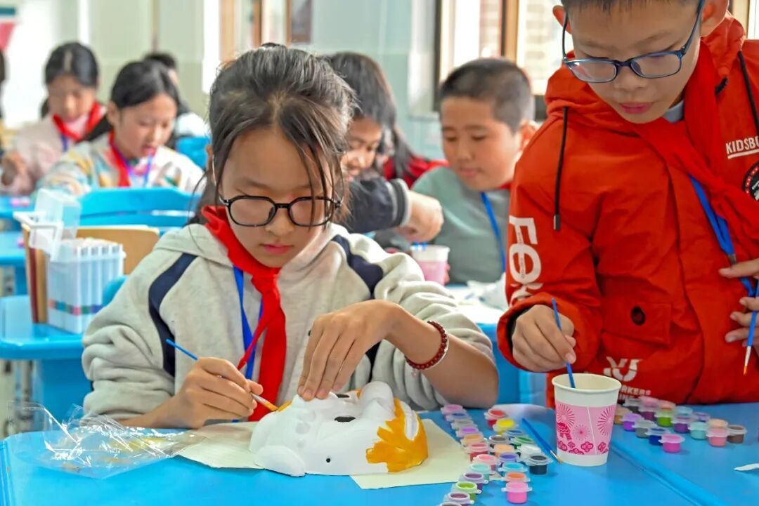 在少年线狮队队长的指导下,学生们拿起画笔,开始绘制线狮脸谱。红、黄、蓝等元素在纸上逐渐成形,一个个稚气却富有创意的“迷你线狮”跃然纸上。孩子们边画边交流,不时抬头比较线条走向和色彩搭配,体验着传统文化在创作中的乐趣。“原来线狮的眼睛和花纹都有讲究!”五年级学生说,“越画越觉得有意思。”